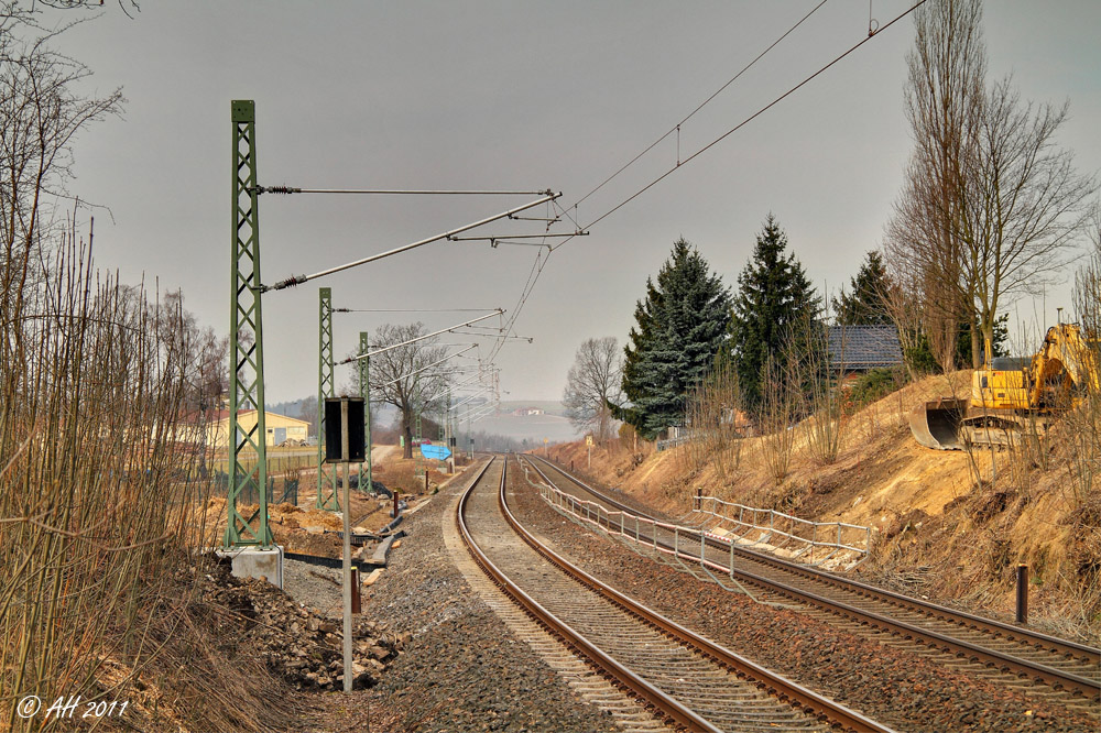 Fahrleitung auf einer Seite montiert.